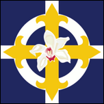 Die Karyatiden (Frankreich) Les Caryatides Die Karyatiden waren der Frauenflügel von The French Work (LOEF), der 1968 gegründeten und 2013 verbotenen ultranationalistischen Bewegung. Die Karyatiden wurden nicht aufgelöst, operierten weiter und traten schließlich 2015 der neu gegründeten Französischen Nationalistischen Partei bei, um als deren Frauenflügel fortzufahren . Die Flagge der Karyatiden ist blau mit einem weißen keltischen Kreuz, darüber ein gelbes Kreuz, dessen Arme mit Lilien enden. Über alles wird in der Mitte eine Orchideenblüte in den richtigen Farben gelegt. Das Flaggendesign ist vom französischen Werk abgeleitet. |