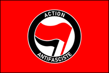 Antifaschistische Aktion (Frankreich) Antifaschistische Aktion Die 2008 gegründete Antifaschistische Aktion ( Action antifasciste ) ist ein Netzwerk französischer autonomer (extrem linker) antifaschistischer Gruppen. Diese Gruppen und ihre Mitglieder werden als Antifas bezeichnet . Die französischen Antifas sind einer informellen Gruppe ähnlicher Bewegungen „angeschlossen", die in den 1990er Jahren in ganz Europa (Dänemark, Niederlande, Schweden, Tschechische Republik, Slowakei, Spanien usw.) entstanden. Sie basieren auf der deutschen kommunistischen Antifaschistischen Aktion der 1930er Jahre, die von den Nazis nach ihrer Machtübernahme im Jahr 1933 niedergeschlagen wurde. Ihr Hauptziel ist die Beseitigung rechtsextremer und neonazistischer Bewegungen, die vor nichts zurückschrecken, auch vor Straßengewalt und illegale Handlungen. Die Hauptflagge von Action antifasciste ist rot mit dem Logo der Bewegung, einer roten und einer schwarzen Flagge auf einer weißen Scheibe, umgeben von einem schwarzen Ring, auf dem in weißen Buchstaben der Name der Organisation steht. Das Emblem ist eine Modernisierung des von der Deutschen Antifaschistischen Aktion in den 1930er Jahren verwendeten Emblems, ursprünglich mit zwei roten Fahnen und einem roten Ring. Bewegungen hinzugefügt Die schwarze Farbe wurde von den modernen Antifa- und symbolisiert die Vereinigung von Kommunisten und Anarchisten gegen Faschisten. Es werden auch die Flaggen mit schwarzem Feld verwendet, manchmal mit den vertauschten Plätzen zweier Flaggen im Logo.