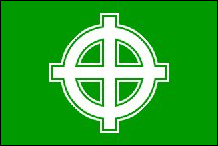 Integralistische Partei Großbritanniens und Nordirlands (Vereinigtes Königreich) Die von Robert Stead und Benjamin Noyles gegründete Integralist Party of Great Britain and Northern Ireland ist eine kleine politische Bewegung in Großbritannien, die eine seltsame Kombination aus Neofaschismus, Lokalismus, Traditionalismus, Gewerkschaftsbewegung, Korporatismus und Umweltschutz zu sein scheint. Sie vereint Elemente sowohl der politischen Linken als auch der Rechten, behauptet jedoch, nicht rassistisch zu sein, obwohl sie sich gegen Masseneinwanderung und das, was sie die „Zwangsjacke" der EU nennen, ausspricht. Sie betrachten die Nation als eine organische Einheit und haben das Gefühl, dass es in Großbritannien einen sozialen, politischen und wirtschaftlichen Niedergang gegeben hat, der korrigiert werden muss. Ihre Flagge zeigt einen grünen Blitz oder Donner auf einem weißen Kreis, der „Blitz in der Sonne" genannt wird und auf einem einfachen grünen Feld platziert ist. Der Integralist behauptet, ihr Symbol sei eine moderne Adaption des „Aktion innerhalb der Einheit"-Symbols der British Union of Fascist, und obwohl es eindeutig von der BUF-Flagge abgeleitet sei, behauptete der Designer der Flagge, Benjamin Noyles, einmal, das Symbol sei nicht neofaschistisch in der Natur. |