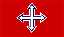 Flagge der National Syndical American Falangist Party (USA) Die National Syndical American Falangist Party (NSAFP), auch einfach „The American Falange" genannt, wurde 1985 gegründet und schien die meisten Überzeugungen der ursprünglichen spanischen Falangist (Faschist) Party zu teilen, obwohl einige der Überzeugungen der Partei, wie die Das Recht jedes Bürgers, „vollautomatische Angriffswaffen" zu besitzen, konnte nur in Amerika entstanden sein. Die Falangisten glaubten an die Macht des Arbeiters, hatten aber auch eine starke Voreingenommenheit gegenüber Muslimen und Homosexuellen. Die NSAFP löste sich im Jahr 2000 auf, ihre Website wird jedoch aus „historischen Gründen" weitergeführt, und viele ihrer ehemaligen Mitglieder schlossen sich später der Christian Falangist Party of America an. (Hinweis: Die Flagge der venezolanischen Phalanx ist fast identisch mit der der NSAFP.) |