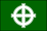 Nationale Allianz (USA) Die weiße separatistische politische Organisation National Alliance (NA) galt vor dem Tod von William Luther Pierce im Jahr 2002 als die am schnellsten wachsende Neonazi-Gruppe der Vereinigten Staaten. Die NA wurde 1974 von Pierce gegründet und hatte zunächst ihren Hauptsitz in Hillsboro , West Virginia. Zum Zeitpunkt seines Todes im Jahr 2002 betrieb das Unternehmen ein White-Power-Plattenlabel namens Resistance Records und betrieb „Resistance Radio", einen (inzwischen nicht mehr existierenden) Webradiosender, der 24 Stunden am Tag White-Power-Rockmusik über das Internet streamte und 250.000 Stammkunden erreichte Hörer in Amerika (nicht bestätigt). Es gab auch eine Radiosendung, American Dissident Voices, die über Kurzwelle und Audio-Streaming im Internet ausgestrahlt wurde. Diese Gruppe hoffte, einen weißen Lebensraum in Nordamerika zu sichern, wo „die physische und kulturelle Präsenz aller Nicht-Weißen beseitigt wurde". Ständige Machtkämpfe nach Pierces Tod führten zu einem stetigen Rückgang der NA-Mitgliederzahl, der 2013 endete offiziell angekündigt. Die ursprüngliche Flagge der NA aus den 1970er Jahren war eine schwarz-weiß-rote Trikolore, die die kaiserliche deutsche Flagge und die Farben der NSDAP widerspiegelte. Sie ähnelt auch stark der Flagge der Volksfront , einer in den 1990er Jahren in Oregon gegründeten Gruppe. (Ob zwischen den beiden Gruppen eine Beziehung besteht, abgesehen von ihren Flaggendesigns, ist unbekannt.) Die letzte bekannte NA-Flagge hatte fünf vertikale Streifen in Blau-Rot-Weiß-Rot-Blau, umgeben von einer „Leben"-Rune ein Eichenkranz auf einer weißen Raute in der Mitte. Interessant ist, dass die Lebensrune während der Nazizeit als Teil des Logos deutscher Apotheken verwendet wurde und nach dem Zweiten Weltkrieg durch das Schlangen- und Schüsselsymbol ersetzt wurde. Anstelle eines Eichenkranzes, der die „Lebensrune" umgab, verwendete die NA auch ein weißes Banner mit dem Gruppennamen, ganz schwarz auf weißem Feld. Die Flagge war quadratisch, vertikal gehisst und hatte rote Fransen, die dem gesamten Design einen Pseudo-Nazi-Look verliehen. Dieses Banner war auf einem Foto zu sehen, das 2002 oder früher in Sacramento, Kalifornien, aufgenommen worden sein soll. |