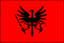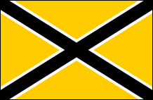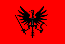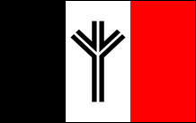 Nationaler Korporativismus (Tschechische Republik) Na'rodni' korporativismus Der neonazistische Nationalkorporativismus (NKORP) wurde 2004 gegründet. Seine Politik war eine Mischung aus Nationalismus, Neofaschismus und Neonazismus-Doktrin. Die Mitgliederbasis überschnitt sich mit denen anderer rechtsextremer Gruppen, so dass sie eine Art Brücke zwischen einer legalen politischen Partei, der „Arbeiterpartei", und dem offen neonazistischen „Nationalen Widerstand" bildete. Der Nationalkorporativismus wurde nach und nach von internen Konflikten aufgezehrt und 2008 aufgelöst, und seine Führer ermutigten seine Anhänger, der Arbeiterpartei beizutreten. Die Flagge war mit einem schmalen roten, außermittig angeordneten „skandinavischen" Kreuz mit breiten schwarzen Rändern auf weißem Feld versehen. Das allgemeine Design verwendet nicht nur die üblichen Nazi-Farben, sondern ähnelt auch entfernt der kaiserlichen deutschen Kriegsflagge. |