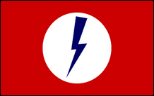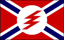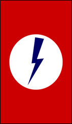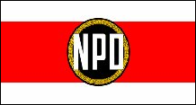 National Renaissance Party 1949-c1980 (USA) 1949 wurde die National Renaissance Party in Yorkville, einem Teil von New York City, gegründet und stand bald unter der Kontrolle eines fanatischen Wirtschaftsprüfers namens James Hartung Madole. Die ursprüngliche Parteimitgliedschaft scheint von älteren nationalistischen Gruppen wie der Christlichen Front, dem Deutsch-Amerikanischen Bund, der Citizens Protective League und der Nationalist Action League übertragen worden zu sein. Die NRP-Aktivitäten blieben weitgehend auf die Region New York City beschränkt, erstreckten sich jedoch gelegentlich auch auf die Gebiete Reading und Philadelphia in Pennsylvania. Die NRP kommunizierte ihre Überzeugungen durch eine Parteipublikation namens National Renaissance Bulletin, die von Fred Weiss herausgegeben wurde. Die Mitgliederzahl der NRP-Partei betrug normalerweise etwa 50 und überstieg nie 200. 1953 fügte die Partei ihrer Organisation unter der Führung von Matt Koehl und Hans Schmidt eine uniformierte „Elitegarde" (EG) hinzu. Die Mitglieder der Elitegarde trugen schwarze Hosen und graue Hemden sowie eine rote Blitzarmbinde (blauer Blitz auf weißem Kreis). Normalerweise hatte die EG nur etwa fünfzehn bis zwanzig aktive Mitglieder. In den 1960er und 1970er Jahren scheint sich die Partei okkult orientiert und in die Mystik verwickelt zu haben; Aufbau von Beziehungen zu Anton LaVey und der Church of Satan. Madole starb 1979 an Krebs und die Partei löste sich bald darauf auf. Das NRP verwendete als Symbol einen Blitz. Ihre Flagge und ihre Armbinden hatten ein durchgehend rotes Feld mit einem blauen Blitz auf einem weißen Kreis. Die Flaggen gab es sowohl im horizontalen als auch im vertikalen Format. |