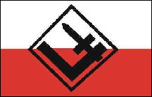 Nationaler Widerstand (Deutschland) Nationaler Widerstand Diese Flagge ist ein Symbol für den Nationalen Widerstand . Es wird nicht von einer bestimmten Partei oder Organisation verwendet, sondern nur für die gesamte Aktion namens „Nationaler Widerstand". In letzter Zeit wird es von organisierten Neonazi-Gruppen in Deutschland verwendet und symbolisiert den nationalen Widerstand. Diese Flagge stammt tatsächlich aus der Zeit vor der nationalsozialistischen Bewegung. Die schwarze Flagge (ohne Hammer und Schwert) war die Flagge einer sozialen Protestbewegung deutscher Bauern in den 1920er Jahren. Die schwarze Fahne mit dem roten Hammer und dem roten Schwert wurde erstmals von Otto Strasser verwendet, einem der Anführer des linken Flügels der NSDAP in den 1920er Jahren. Es symbolisierte die Vereinigung von Arbeitern und Soldaten. Nach dem Zweiten Weltkrieg führte Strasser die schwarze Flagge mit rotem Hammer und Schwert als Flagge einer kurzlebigen neuen politischen Bewegung wieder ein, die nie an Bedeutung gewann. In den 1970er und 1980er Jahren wurde die Flagge jedoch von neueren Neonazi-Bewegungen wieder eingeführt . In den 1990er Jahren wurde es zum Symbol der nationalen Revolution und wird seitdem weiterhin verwendet. |