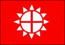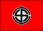NSP-J-Flagge Auf ihrer Nazi-ähnlichen Flagge wurde das Symbol des Hakenkreuzes durch das japanische Schriftzeichen „ kuni" (Land) ersetzt.