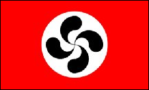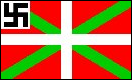 Nationalsozialistische Bewegung des Baskenlandes (Spanien) Nationalsozialistische Bewegung von Euskalherria Eine Reihe von Flaggen wurden auf Websites angebracht, um offensichtlich die baskischen Nationalistenbewegungen in Verruf zu bringen und sie mit der nationalsozialistischen Bewegung der Nazis in Verbindung zu bringen. Die Baskische Nationalsozialistische Partei des Baskenlandes existiert nicht. Das Lauburu-Symbol gehört jedoch zu den traditionellen Symbolen des baskischen Volkes. Die nicht existierende Movimiento Nacionalsocialista de Euskalherria (Nationalsozialistische Bewegung des Baskenlandes) beanspruchte diese Flagge, die das Lauburu anstelle des Nazi-Hakenkreuzes verwendet, als ihre Flagge. Sie nannten es „lauburu o esvástica vasca" (Lauburu oder baskisches Hakenkreuz) und sagten, es repräsentiere ihre nationalsozialistische Bewegung in Spanien. Auch andere fiktive Flaggen, die sich als Flaggen der Nationalsozialistischen Bewegung des Baskenlandes ausgeben, wurden ins Internet gestellt. Soweit festgestellt werden kann, gibt es im Baskenland weder eine dieser Flaggen noch eine nationalsozialistische Partei. Der „Arranano Beltza" (schwarzer Adler) wird üblicherweise auch auf baskischen Unabhängigkeitsflaggen abgebildet, hat aber nichts mit der nationalsozialistischen Bewegung zu tun. |