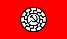 Nationalbolschewistische Partei (Russland) „National-Bol'shevistskaya Partiya Die National-Bol'shevistskaya Partiya (NBP) wird seit ihrer Gründung im Jahr 1992 als „Nationale Bolschewistische Front" von Eduard Limonov geführt. Sie entstand durch den Zusammenschluss von sechs kleineren rechtsextremen bolschewistischen Gruppen. Diese neu gegründete Nationalbolschewistische Partei, auch bekannt als Nazbol, widmete sich der Ideologie des Nationalbolschewismus. Ihre Plattform forderte eine Revolution und die Umwandlung Russlands, erweitert um die Teile benachbarter Staaten der ehemaligen UdSSR, die eine bedeutende russische Bevölkerung haben, in einen Einheitsstaat mit einem ähnlichen politischen und wirtschaftlichen System wie der ehemaligen UdSSR, jedoch mit den höchsten Staatsämtern ist ethnischen Russen vorbehalten. Ein solch transformierter Staat würde seine Herrschaft über den größten Teil Eurasiens ausdehnen, nicht unähnlich der sowjetischen Herrschaft im Warschauer Pakt und im RGW. Seit 2005 war die Partei von der Wahlregistrierung ausgeschlossen und wurde 2007 vollständig verboten. Im Jahr 2010 gründete Eduard Limonov eine weitere neobolschewistische Partei mit dem Namen „Anderes Russland", die alle nationalen bolschewistischen Flaggen durch eine schwarz-gelb-weiße horizontale Trikolore ersetzte, auf deren gelbem Feld der Name der Partei in Schwarz eingraviert war. Es scheint, dass nicht alle Mitglieder der Nationalbolschewistischen Partei ihrem Führer in seine neue Partei gefolgt sind und dass einige von ihnen eine Reihe neuer Organisationen gegründet haben, die möglicherweise einige oder alle der alten Flaggen weiter verwendet haben. Ihre Flagge basiert auf dem Nazi-Schema (rot oder schwarz, mit einer zentrierten weißen Scheibe mit einem schwarzen Symbol, aber anstelle des Hakenkreuzes verwenden sie dort das Sichel-und-Hammer-Gerät. Die Flagge ist eine interessante Verschmelzung zweier bekannter und entgegengesetzte Symbole, was die seltsame Verschmelzung der bolschewistischen und nationalsozialistischen Doktrinen widerspiegelt. Die Flagge (Typ Nr. 4) erschien nach dem Verbot der roten Flagge mit schwarzem Hammer und Sichel, das Wort „CENZURA" bedeutet im Grunde „zensiert" und wurde später eingeführt ersetzt durch die schwarzen Flaggen mit Hammer und Sichel (Typ Nr. 2). Obwohl rote Fahne mit schwarzem Hammer und Sichel auf einer weißen Scheibe 2007 verboten, gibt es immer noch eine Flagge, deren Design alle diese Elemente enthält und sie mit der „Schwarzen Sonne" kombiniert, einem okkulten Symbol, das gelegentlich von Neonazis verwendet wird, und so eine weitere Flagge in der Reihe der vexillologischen Oxymora hervorbringt sind so charakteristisch für die Neobolschewiki. Diese Flagge (Typ Nr. 6) hat eine große weiße Scheibe, die mit dem Außenring der „BlackSun" eingefasst ist, und eine kleinere Scheibe, die mit dem Innenring der „BlackSun" eingefasst ist und mit schwarzem Hammer und Sichel beladen ist, alles auf Rot Feld. Eine weitere Möglichkeit, das Symbol zum Verbot von Verordnungen zu umgehen, besteht darin, eine Reihe von Flaggen herzustellen, bei denen Handgranaten das Hammer- und Sichelsymbol in der zentralen weißen Scheibe ersetzen, obwohl dies kaum auf eine friedliche, gesetzestreue Organisation hinweist. Anscheinend übt das kriegerische Symbol große Anziehungskraft auf die Mentalität von Menschen aus, die sich diesen extremistischen Gruppen anschließen, und es überrascht nicht, dass diese Flaggen in verschiedenen Größen und Verhältnissen (sowohl mit schwarzem als auch rotem Hintergrund) aufgetaucht sind und so aussehen wird bei öffentlichen Kundgebungen der NBP immer beliebter. Solche Flaggen wurden in Russland bereits im Jahr 2002 verwendet und erfreuen sich in verschiedenen Spiegelparteizweigen wie in Lettland und Litauen großer Beliebtheit. Diese Flaggen sowie einige Varianten mit Hammer und Sichel wurden auch von Eduard Limonovs neuer Partei „Anderes Russland" verwendet. |