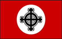 Nationalistische Koalition (USA) Im Jahr 2006 kam es zu einer Spaltung der National Vanguard, selbst ein Nachkomme der National Alliance, und es wurde eine neue weiße supremacistische Gruppe, die Nationalist Coalition, unter der offensichtlichen Führung von Robert Jay Mathews und Todd Weingart gegründet. Sie ist besonders in Tampa und St. Petersburg (Florida) aktiv, hat aber auch im Westen bis nach Phoenix, Arizona, Mitgliedschaftsansprüche geltend gemacht. Ihre Mitglieder gaben vor, „eine neue Art von weißem Aktivismus" zu sein, verbreiteten die übliche rassistische und antisemitische Propaganda in verschiedenen Städten Floridas, mieteten Werbetafeln für die Website der Gruppe und verteilten rassistische Musik-CDs . Sie sind davon überzeugt, dass „Juden die Medien in Amerika kontrollieren … und in fast jedem europäischen Land mit bedeutendem Einfluss, einschließlich Großbritannien und Russland." Sie behaupten, dass der Oberste Gerichtshof, den sie als „Jewish Supremacy Court" bezeichnen, ebenfalls von Juden kontrolliert wird. Ihr Ziel scheint der Aufbau einer nationalen pro-weißen Partei zu sein, deren Plattform darin besteht, einen weißen Lebensraum zu schaffen. Dieser Raum wird völlig frei von allen Nicht-Weißen sein. Sie sponsern auch eine Radiosendung mit dem Titel „ Nationalist Matters " „...um unser Volk zu erziehen und aufzuklären – Menschen europäischer Abstammung." Sie haben einen jährlichen Stipendienwettbewerb ins Leben gerufen, „um den engagierten Studenten zu belohnen, der sein Engagement für die Unterstützung der weißen Gemeinschaft gezeigt hat." Die beiden hier gemeldeten Flaggen sind sehr spekulativer Natur und ihre tatsächliche Verwendung muss noch überprüft oder dokumentiert werden. Das Grunddesign platziert das „Odal-Rune"-Emblem der Bewegung auf einem blauen oder roten Feld, den Farben, die von ihren Mutterorganisationen bevorzugt werden. |