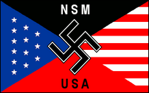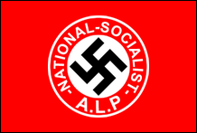 Nationalsozialistische Amerikanische Arbeiterpartei (USA) Die National Socialist American Labour Party spaltete sich von der National Socialist Movement of America ab. Sie bezeichnen sich selbst als „eine orthodoxe nationalsozialistische politische Partei, deren Ziel es ist, den Nationalsozialismus in den aktiven politischen Prozess zu integrieren". Sie behaupteten, „Engagement und Hingabe an die Prinzipien der National Socialist American Labour Party und an die von Adolf Hitler dargelegte nationalsozialistische Weltanschauung" zu fordern. Die NSALP-Flagge war eine einfache rote Flagge mit dem Logo der Partei in der Mitte. |