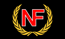 Das Parteiemblem ist das Monogramm NF, da eine der Flaggen (Typ Nr. 1) eindeutig von der des Dritten Reiches abgeleitet ist, indem das Hakenkreuz durch ein schwarzes schräges Monogramm ersetzt wurde. Eine andere Flagge (Typ Nr. 2) ähnelt der der Imperial Fascist League . Eine dritte Flagge (Typ Nr. 3) ist schwarz, mit einem roten Monogramm versehen, weiß mit Fimbrien und umgeben von zwei goldenen Olivenzweigen, ähnlich den weißen, die von den Vereinten Nationen verwendet werden. Typ Nr. 4 leitet sich von der Kriegsflagge des Dritten Reiches von 1938 bis 1945 ab, indem das Hakenkreuz durch das schwarze Monogramm NF ersetzt, der innere schwarze Rand von der Scheibe entfernt und das Eiserne Kreuz im Kanton durch die schwarze Odal-Rune mit fimbriertem Weiß ersetzt wird. |