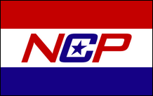 Nationalkapitalistische Partei (USA) Die National Capitalist Party (NCP) wurde 2008 von Mitgliedern der Christian Falangist Party of America (CFPA) unter der Leitung von Patricio Cortes Bridges (alias Pat Bridges), dem Gründer und langjährigen Nationaldirektor der CFPA, gegründet. Die neue Partei sollte der säkulare Ersatz der alten sein, während die meisten Parteiziele dieselben blieben. Die NCP hatte offensichtlich keinen großen Erfolg, denn Bridges und ein Teil seiner Anhänger gründeten die CFPA im Jahr 2010 als Christian Phalange Organization neu und ließen die NCP bis Ende 2011 nur über ihre Website existieren, obwohl die beiden Organisationen ursprünglich möglicherweise existierten beabsichtigt, zusammenzuarbeiten, da einige der NCP-Logos seit ihrer Erstellung auf der Website von Christian Phalange erscheinen. Die NCP hatte zuvor versucht, im Exil eine gleichnamige kubanische Partei zu gründen, die offenbar schon vor ihrem Vorbild ausgestorben war. Die Flagge der Hauptpartei hatte drei Versionen, mit dem Feld entweder in Rot, Weiß oder Blau, und war mit dem Logo der Hauptpartei in der Mitte versehen. Das Logo war eine weiße Scheibe mit rotem Rand, in deren Mitte sich etwas befand, das einem Militärflugzeugrondell aus dem Jahr 1942 sehr ähnlich zu sein schien (eine blaue Scheibe mit einem weißen Stern), und acht weiße Pfeile, die aus dem Ring herausragten und darauf zeigten das zentrale Rondell; Der Ring war mit der Inschrift „NATIONAL CAPITALIST PARTY of AMERICA" versehen, was möglicherweise der offizielle Name der Partei war, obwohl die Gebietsbezeichnung selbst in den Logos offenbar selten verwendet wurde. Das Rondell in der Mitte sollte Amerika selbst darstellen, der rote Rand symbolisierte das zu seiner Verteidigung vergossene Blut, die Pfeile symbolisierten die Himmels- und Ordnungsrichtungen und damit die Einheit des Landes, während die vollständige rote Form – der Ring mit den Pfeilen – ebenfalls symbolisierte soll ein Rad darstellen, das den Fortschritt und den Kapitalismus symbolisiert. Auf den Flaggen mit rotem oder blauem Feld wurde das Logo zusätzlich mit einem weißen Rand umgeben. Eine alternative Parteiflagge war ein rot-weiß-blaues horizontales Triband, dessen weißes Feld breiter als die beiden anderen war und mit einem der Logos der alternativen Partei beladen war, das aus großen schrägen Buchstaben „NCP", den Buchstaben „N" und „P" bestand rot und Buchstabe „C" in Blau; Der Buchstabe „C" umschloss einen schrägen blauen fünfzackigen Stern. Die Schriftart war fast identisch mit der Bank Gothic in fetter Schrägschrift. Andere Logos, darunter ein rot-blaues Nashorn mit drei Sternen oder die Buchstaben „NCP" in Weiß, die eindeutig an den Esel der Demokraten und den Elefanten der Republikaner erinnern sollen, scheinen auf den Flaggen nicht verwendet worden zu sein. Alle diese Flaggen und Logos könnten vom Parteichef Pat Bridges entworfen worden sein, wie es auch bei denen seiner früheren und späteren politischen Organisationen der Fall zu sein scheint. |
