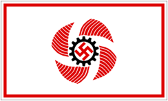 RAD-Sektions- oder Divisionsflaggen Dies ist die Flagge der Division „Andreas Bauriedl", einer der Einheiten des Nationalen Arbeitsdienstes (RAD), der offiziellen nationalen Arbeitsorganisation des Dritten Reiches. Der Zweck des RAD bestand darin, den Nationalstolz auf deutsche Arbeiter, deutsche Produkte, Produktivität und Handwerkskunst zu fördern. Die Originalversionen dieser Flaggen hatten üblicherweise silberne oder goldene Fransen. Die Abteilung „Horst Wessel". Verzerrte Nachbildung der Flagge |
