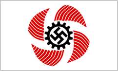 The German Labor Front (DAF - Deutsche Arbeitsfront) Flags Die Deutsche Arbeitsfront (DAF – Deutsche Arbeitsfront) war die nationalsozialistische Gewerkschaftsorganisation, die die Gewerkschaften der Weimarer Republik ersetzte, die Adolf Hitler 1933 nach seiner Machtübernahme verboten hatte. Die Mitgliedschaft im DAF war theoretisch freiwillig, aber jeder Arbeitnehmer in jedem Bereich des deutschen Handels oder der deutschen Industrie hätte ohne Mitgliedschaft Schwierigkeiten gehabt, einen Job zu finden. Unterorganisationen der DAF waren der RAD (Nationaler Arbeitsdienst) und die Organisation „Kraft durch Freude" (KdF). Der Zweck der DAF bestand darin, die politische Kontrolle über die deutsche Industrie und den deutschen Handel sicherzustellen. Flagge für vorbildliche nationalsozialistische Fabriken 1936-1945 DAF-Einheiten erhielten Flaggen nach dem üblichen Muster der NSDAP-Parteiflaggen. Der Unterschied bestand in einem hinzugefügten schwarzen, weiß umrandeten Zahnrad, das ein schwarzes Hakenkreuz umschloss. Für die Einheiten, die sich in einer „Ortsgruppe" befanden, wurde in der oberen linken Ecke der Flagge ein hellbrauner Aufnäher mit hellblauen Paspeln angebracht. Der Bezirksname auf den Tafeln erschien in weißen gotischen Buchstaben. Unten stand die Nummer der Fabrik. Um diejenigen Betriebe zu motivieren, die ihre Arbeit besonders gut im Sinne der nationalsozialistischen Ideologie verrichteten, wurden Sonderflaggen an sogenannte „Nationalsozialistische Vorbildbetriebe" ausgegeben. Sie ähnelten den üblichen Flaggen, hatten jedoch ein goldenes Zahnrad sowie eine goldene Fransenbordüre. Mit Beginn des Zweiten Weltkriegs wurde die Situation schwieriger. 1941 wurde ein neuer Wettbewerb ins Leben gerufen, um die Fabriken zu motivieren, ihre Produktion an Kriegsmunition zu übertreffen. Dieser Wettbewerb wurde „Kriegs-Leistungswettkampf der Deutschen Betriebe" genannt. Diejenigen Fabriken, die die hohen Leistungserwartungen erfüllten, wurden mit einer besonderen Flagge ausgezeichnet, auf der in der oberen rechten Ecke eine Medaille angebracht war. Es war das Kriegsverdienstkreuz ohne Schwerter, das auch an Einzelpersonen verliehen wurde. Die Flagge existierte je nach Produktionsmenge in zwei Versionen, wobei die höchste die Version in Gold war. Diese besonderen Flaggen enthielten Hakenkreuze, die einen zusätzlichen weißen und schwarzen Rand hatten. Es dürfte interessant sein, dass die Kosten für diese Flaggen etwa 30 Reichsmark betrugen, was heute etwa 300 Euro pro Stück entsprechen würde. |