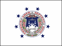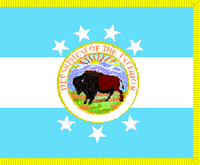 Flagge des Innenministers Der Innenminister der Vereinigten Staaten ist der Leiter des Innenministeriums der Vereinigten Staaten. Das 1849 gegründete US-Innenministerium schützt die natürlichen Ressourcen und das Erbe Amerikas. Der Sekretär fungiert auch als Mitglied des Vorstands der National Park Foundation und ernennt die Privatpersonen. Die aktuelle Flagge (Version von 1934) des Ministers hat einen einfarbigen hellblauen Hintergrund mit dem Siegel des Innenministeriums in der Mitte und 7 weißen Sternen, die in 2 geraden horizontalen Reihen angeordnet sind, davon 3 über dem Siegel und 4 unter dem Siegel. Die sieben Sterne stellen die sieben Hauptunterabteilungen des Departements dar, als diese Flagge eingeführt wurde: Bureau of Indian Affairs, Bureau of Reclamation, National Park Service, Bureau of Land Management, Bureau of Mines, Geological Survey und Fish and Wildlife Service. Wenn die Flagge im Innenbereich verwendet wird, hat sie einen goldenen Rand sowie eine Kordel und Quasten, normalerweise mit einem ausgebreiteten Adler-Endstück an der Stange. Es gibt auch eine Schiffsflagge, 22 x 32 Zoll ohne Fransen, und eine Autoflagge, 18 x 26 Zoll ohne Fransen. Die frühere Flagge (Version von 1917) wurde bis Mitte der 1930er Jahre verwendet, ein horizontales Triband, hellblau-weiß-hellblau, mit dem Siegel in der Mitte, umgeben von sieben weißen Sternen, drei über und vier unter dem Siegel, angeordnet in Bögen. Beachten Sie, dass sich das damalige Siegel von dem derzeit verwendeten unterschied und das Gründungsdatum der Abteilung fehlte. |