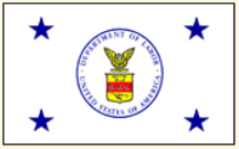 Flagge des Energieministers Der US-Energieminister ist Leiter des US-Energieministeriums und Mitglied des Kabinetts des Präsidenten. Die Position wurde am 1. Oktober 1977 von Präsident Jimmy Carter geschaffen. Der Energieminister der Vereinigten Staaten hat die Aufgabe, den Präsidenten bei der Umsetzung von Richtlinien zur Investition in saubere Energie, einschließlich Kernkraft und anderen alternativen Energiequellen, zu unterstützen und die Abhängigkeit der Vereinigten Staaten von ausländischem Öl zu verringern. Das Energieministerium ist auch mit der schwierigen Aufgabe der Entsorgung radioaktiver Abfälle und der Aufrechterhaltung der Umweltqualität betraut. Die Flagge des Energieministers hat ein hellblaues Feld mit dem Siegel des Ministeriums in der Mitte. Das Siegel ist von einem sehr schmalen weißen Fibrium umgeben und scheint nicht in jeder Ecke einen weißen Stern zu haben. Das Datum der Einführung dieser Flagge ist unklar. |