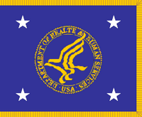 Flagge des Ministers für Gesundheit und menschliche Dienste 1980 Der Minister für Gesundheit und menschliche Dienste der Vereinigten Staaten ist der Leiter des Ministeriums für Gesundheit und menschliche Dienste der Vereinigten Staaten und Mitglied des Kabinetts des Präsidenten. Der Sekretär berät den Präsidenten in nationalen Gesundheitsfragen. Dazu gehört die Beratung des Präsidenten in einer Vielzahl von Gesundheitsangelegenheiten, einschließlich Programmen zur Einkommenssicherung, und nach den Anschlägen vom 11. September (und den darauffolgenden Anthrax-Anschlägen) eine besondere Rolle im Krieg gegen den Terrorismus. Das Büro war früher als Minister für Gesundheit, Bildung und Soziales bekannt. |