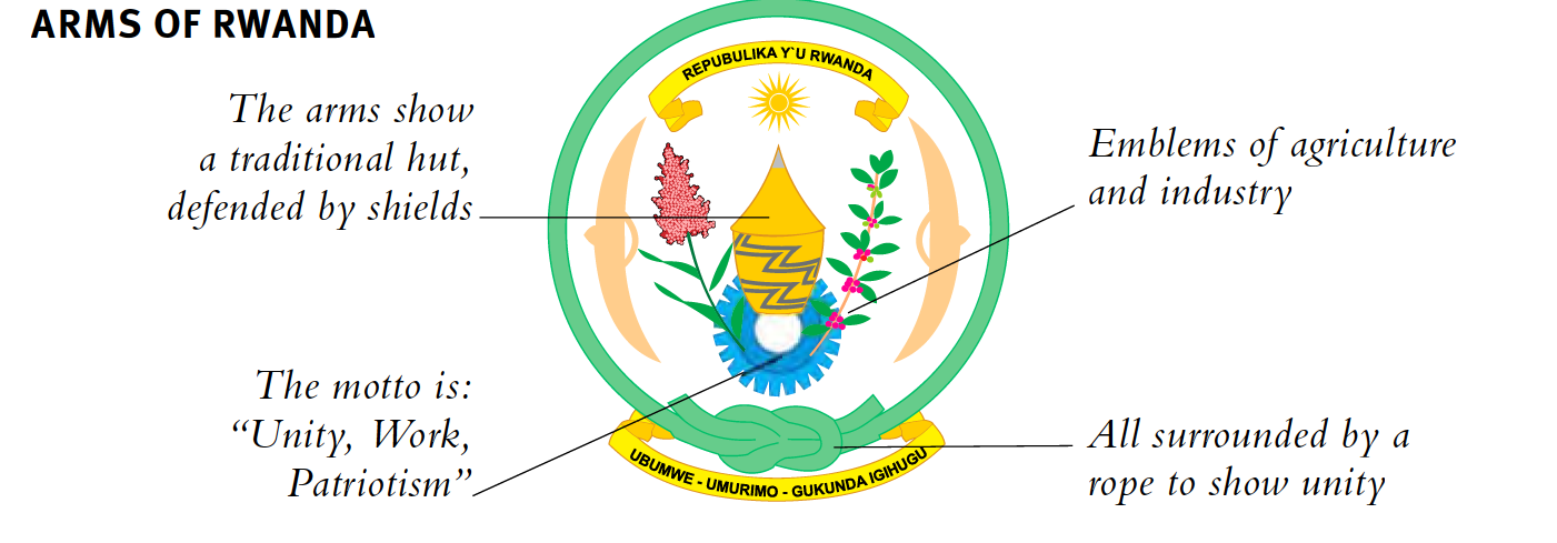 Im Jahr 2001 führte Ruanda eine neue Nationalflagge, ein neues Nationalwappen und eine Nationalhymne ein, als Reaktion auf den Wunsch der Regierung, sich auf zukünftige Möglichkeiten statt auf die unruhige Vergangenheit zu konzentrieren. Es wurde entschieden, dass die alten nationalen Symbole die Vorstellungen von ethnischem Separatismus und Gewalt verstärkten, die schließlich zum Völkermord von 1994 führten. Für die neue Flagge Rot und Schwarz, die oft mit Blut bzw. Trauer in Verbindung gebracht werden, wurden zugunsten der optimistischeren Farben Blau, Gelb und Grün entfernt. Die neuen nationalen Symbole Ruandas symbolisieren nationale Einheit, Respekt vor der Arbeit, Patriotismus und Vertrauen in die Zukunft.