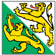 Die 1803 eingeführte Flagge des Thurgaus zeigt zwei diagonal angeordnete goldene Löwen. Sie sind dem Wappen entnommen, das aus dem Mittelalter stammt.