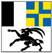 Das Waffenwappen stammt aus dem Jahr 1394 und weist Farben auf, die von denen der Konföderation abgeleitet sind. Die Flagge war ursprünglich rot mit einem weißen Kreuz, wurde aber in ihre heutige Form vereinfacht.