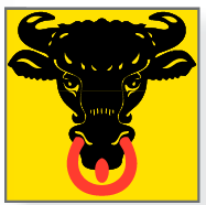 Das Wappen ist ein Auerochsenkopf (verbunden mit dem Kantonsnamen). Es stammt aus dem 13. Jahrhundert, der Nasenring wurde jedoch später hinzugefügt.