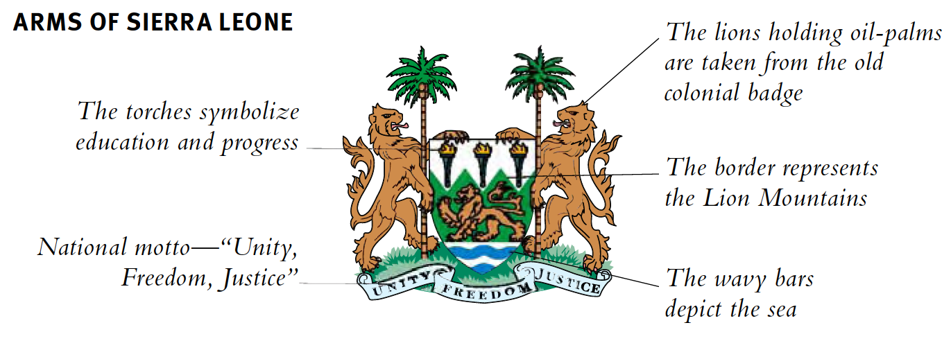 Das Wappen und die Flagge von Sierra Leone wurden vom College of Arms entworfen und 1960 verliehen.