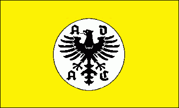 Die erste gemeldete Flagge des ADAC war ein weißer dreieckiger Wimpel, der durch ein rotes skandinavisches Kreuz mit gelben und schwarzen Umrissen, den Nationalfarben der Wiemar-Republik, geteilt und zum Hissen verschoben wurde. Das Kreuz wird von einem ADAC-Logo überlagert. Das Logo hatte einen schwarzen Adler, umgeben von den schwarzen gotischen Buchstaben „ADAC" in einer weißen Scheibe.