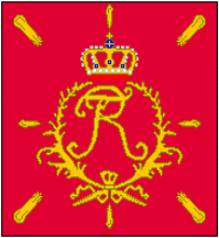 Die Artillerie bestand 1740 aus einem einzigen Bataillon, 1741 aus zwei Bataillonen und 1758 aus drei Bataillonen. 1762 wurden zwei Regimenter mit jeweils drei Bataillonen aufgestellt; Jedes Bataillon bestand aus fünf Kompanien. Im folgenden Jahr wurden aus den beiden Regimentern drei mit jeweils zwei Bataillonen. Im Jahr 1772 kam ein viertes Regiment hinzu. Anscheinend gab es für die gesamte Artillerie nur eine Farbe, die ein Paar gekreuzter Kanonenrohre zeigte, über denen das Spiegelemblem lag. |