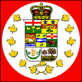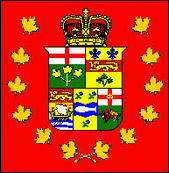 | Kanadischer Schild 1907-1924 Die Provinzwappen von Manitoba, Prince Edward Island und British Columbia aus dem 19. Jahrhundert wurden vom College of Heralds nicht anerkannt und mussten geändert werden, als 1905 offizielle Provinzwappen genehmigt wurden. Der „Union Jack" wurde auf den Häuptling verschoben, da die Hauptsymbolik des Wappens den größten Teil des Schildes einnehmen sollte (z. B. entsprechen Sonne und Wasser im Wappen von British Columbia dem Büffel im Wappen von Manitoba). |