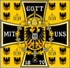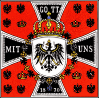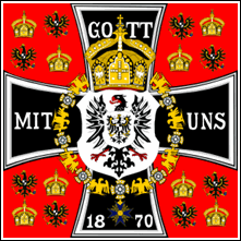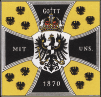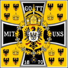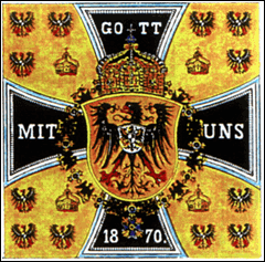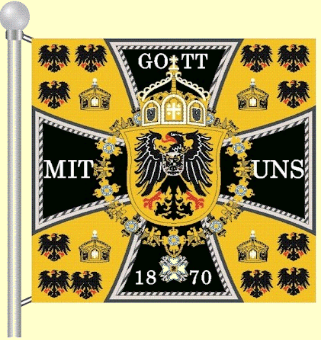 Auf dem Eisernen Kreuz, das das Motto „Gott mit uns" trug, war der preußische Adler auf einem weißen (silbernen) Schild abgebildet, gekrönt von der Krone des neuen Kaisers. Der Schild war von der „Kette des Schwarzen Adler Ordens" umgeben. Jede der vier Ecken der Standarte war mit zwei preußischen Adlern und zwei Kaiserkronen ausgestattet.