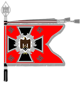 Im Jahr 1936 wurden spezielle Flaggen und Standarten für das deutsche Heer eingeführt. Es wurde beschlossen, dass Einheiten, die nicht motorisiert waren , eine quadratische Flagge tragen mussten, während motorisierte Einheiten eine Standarte tragen mussten. Die Flagge hatte ein Quadratmaß von 125 cm und war an einem Flaggenstab mit einer Gesamthöhe von 3 Metern befestigt, auf dem ein Wehrmachtsadler zu sehen war. Das Standardtuch war 75 cm lang und 51 cm hoch. Der Einschnitt erfolgte im sogenannten „Husarenschnitt", der 25 cm tief war. Der Stab musste 2,85 Meter hoch sein.