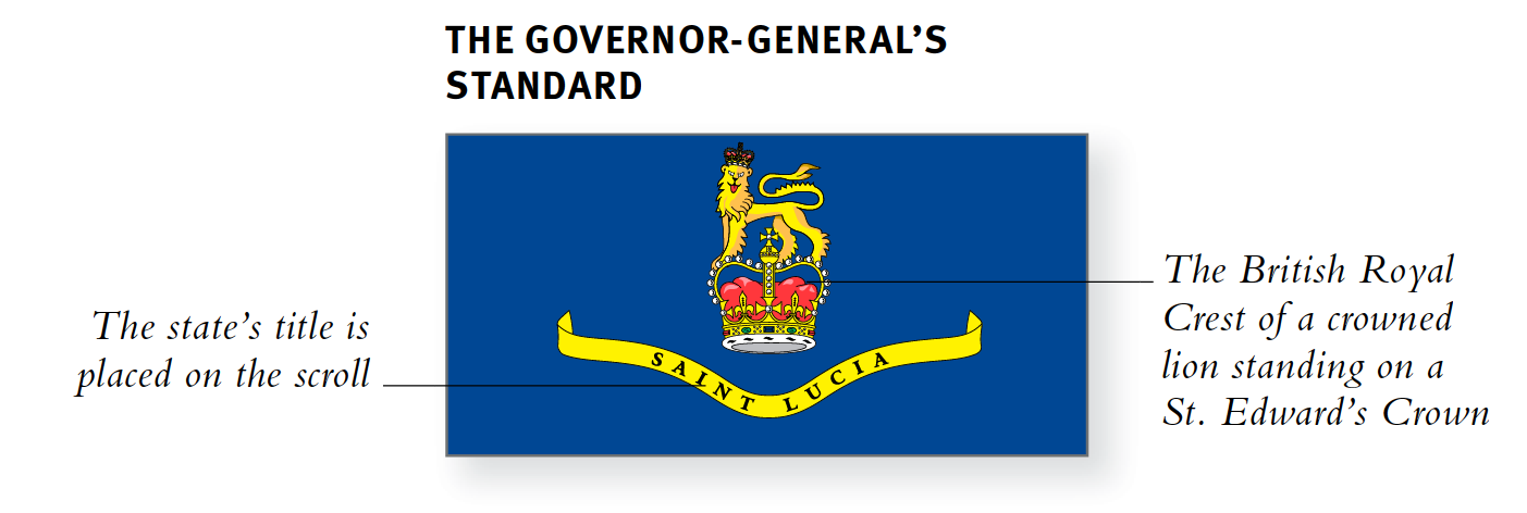 Die Flagge wurde eingeführt, als St. Lucia 1967 ein britischer assoziierter Staat wurde. Sie wurde von einem lokalen Künstler, Dunstan St. Omer, entworfen. Das blaue Feld stellt das Meer dar, aus dem die Zwillingsgipfel der Pitons hervorragen, von denen es heißt, dass sie „steil aus dem Meer ragen und zum Himmel blicken – ein Symbol der Hoffnung". Das gelbe Dreieck steht für Sonnenschein und die schwarze Pfeilspitze auf Weiß, für die Zwillingskulturen der Insel. Bei der Unabhängigkeit wurde die Flagge beibehalten, aber die Höhe des gelben Dreiecks wurde erhöht. Außerdem wurde eine neue Form des Wappens übernommen, die das nationale Motto symbolisiert: „Das Land, das Volk, das Licht". Außer der Flagge des Generalgouverneurs und der Hauptstadt Castries sind keine weiteren Flaggen bekannt.