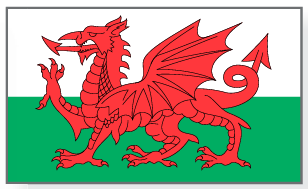 Der Rote Drache wurde 1959 als walisische Nationalflagge anerkannt und ist ein altes Wahrzeichen von Wales. Eine Zeit lang erschien es auf einem grünen Hügel, aber die horizontale Aufteilung ist traditionell.