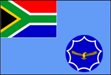 Südafrikanische Luftwaffe 1940-1951 Am 3. Dezember 1940 legte die Air Directorate Order Nr. 212/1158 fest, dass „die Flagge der südafrikanischen Luftwaffe auf allen Luftwaffenstationen mit der Flagge der Royal Air Force (RAF) geflogen werden sollte". Am 17. Dezember 1940 wurde durch eine Generalverordnung die erste unverwechselbare Flagge für die SAAF geschaffen. Dieses basierte auf dem gleichen Design wie das der RAF, jedoch mit der südafrikanischen Flagge im Kanton und einem Rondell aus den südafrikanischen Nationalfarben, nämlich drei konzentrischen, gleich breiten Ringen, von außen nach innen dunkelblau, weiß und orange, im Flug. |