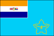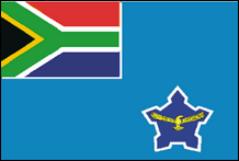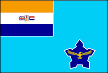 Südafrikanische Luftwaffe 2003 - Bei einer Retreat-Zeremonie am 25. April 2003 wurde das alte SANDF-Emblem, das auf dem Umriss von Cape Castle basierte, offiziell abgeschafft. Das neue SANDF-Emblem mit einem neunzackigen „Stern", der die warme Sonne Afrikas und der neun Provinzen Südafrikas darstellt, wurde am 29. April 2003 offiziell dem Chef der Verteidigungsstreitkräfte überreicht. Mit Ausnahme des Abzeichens im Hosenschlitz ist die neue SAAF-Flagge in Farbe und Gesamtdesign identisch mit ihrem unmittelbaren Vorgänger und enthält einen goldenen Luftwaffenadler in der Mitte eines neunzackigen Sterns. |