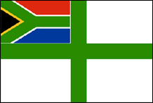Flagge der südafrikanischen Marine 1994 Vom 27. April 1994 bis zum 11. November 1994 verwendete die südafrikanische Marine die neue Nationalflagge, die am 27. April 1994 eingeführt wurde, als Marineflagge. |