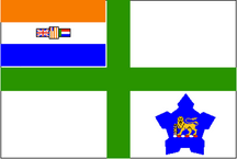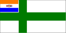 Südafrikanische Marine 1981-1994 Am 31. Mai 1981 kam eine neue Flagge zum Einsatz. Diese Flagge änderte die Proportionen der Marineflagge auf 2:3. Das grüne Kreuz auf weißem Grund mit fimbierter Nationalflagge des Kantons wurde beibehalten. Allerdings wurde das Marineabzeichen in Form des Wappens des südafrikanischen Wappens auf einem blauen Grundriss des Castle of Good Hope nun im unteren Fliegenviertel platziert. Diese Flagge wurde bis zum 26. April 1994 gehisst. |