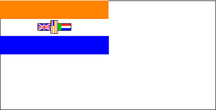 Südafrikanische Marinedienste 1946-1951 Die erste speziell südafrikanische Marineflagge wurde am 1. September 1946 in Dienst gestellt und bestand aus einem schlichten weißen Feld mit der südafrikanischen Nationalflagge im Kanton. Aus praktischer Sicht war dieser Entwurf keine gute Flagge, da er auf See bei schlechten Sichtverhältnissen schwer zu identifizieren war und am 15. Mai 1951 ein neuer Entwurf vorgeschlagen wurde. |