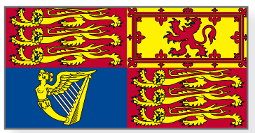 Dieses Formular wird seit der Thronbesteigung von Königin Victoria im Jahr 1837 verwendet und stellt die drei Gebiete dar, die zum Vereinigten Königreich vereint sind (England, Schottland und Nordirland). Streng genommen handelt es sich bei Flaggen dieser Art eher um Wappenbanner als um „Standarten".