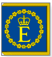 Dies wird verwendet, wenn sich die „Königin nicht in einem Reich der Königin" befindet (dh in einem Land, dessen Staatsoberhaupt sie direkt ist) oder in einem Land, in dem es keine lokale königliche Standarte gibt. Es handelt sich um ein Banner mit dem Anfangsbuchstaben „E" Ihrer Majestät, einer goldenen Krone und einem Rosenkranz.