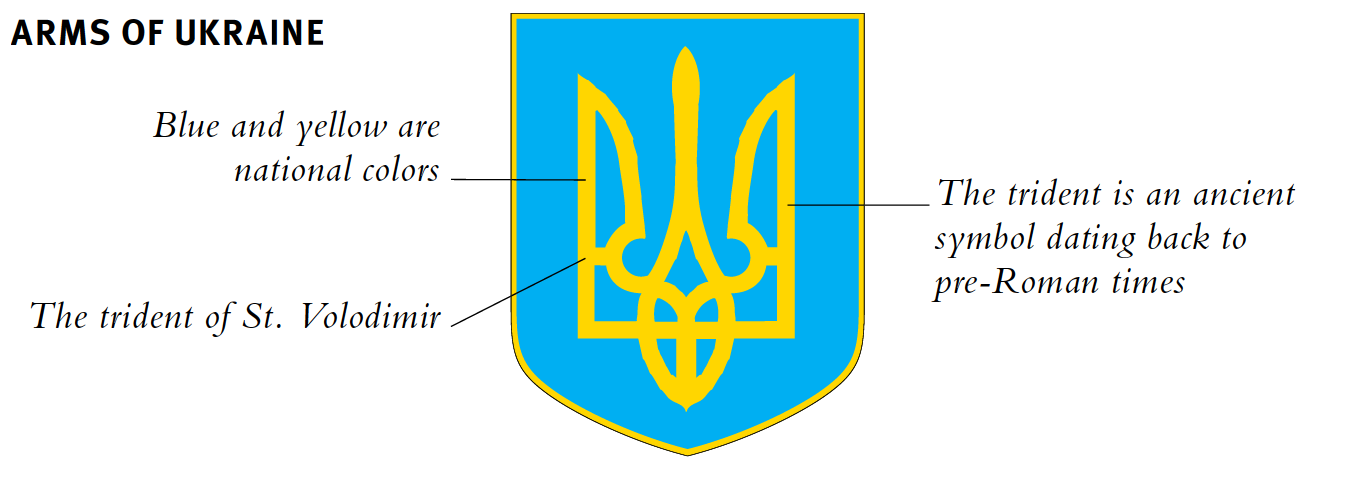 The Ukrainian coat of arms is in the national colors and features an ancient trident symbol.