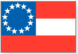Als die Südstaaten 1860/61 aus der Union austraten, wurde am 3. März 1861 eine neue Flagge für die Konföderation gehisst. Die als „Stars and Bars" bekannte Flagge hatte ursprünglich 7 Sterne, im Laufe der Zeit wurden diese jedoch auf 13 erhöht 1861, als weitere Staaten der Konföderation beitraten.