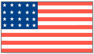 Nach 1795 wurden fünf neue Staaten gegründet, aber eine neue Flagge wurde erst 1817 entworfen, als der Kongress beschloss, dass in Zukunft nur noch wenige Sterne hinzugefügt und die Flagge wieder 13 Streifen haben sollte, um das Erscheinungsbild der Flagge zu bewahren. Die neuen Sterne wurden am 4. Juli 1818 hinzugefügt und dieses System wird seitdem beibehalten.