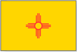 Diese markanteste Flagge wurde 1925 eingeführt und verwendet das Sonnensymbol der Zia-Pueblo-Indianer, während die Farben die spanische Kolonialzeit repräsentieren.